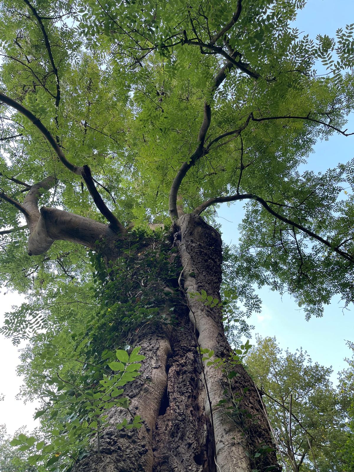 In het logo van Samen voor de Aarde stopten we een Es. Een echt bestaande, trots rechtop staande oude Es. Verweerd en met bijna holle stam blaakt en krioelt hij van leven. Mossen op de schors, insecten in en op het hout, vogels die er rusten en voedsel vinden, schimmels tussen zijn wortels.